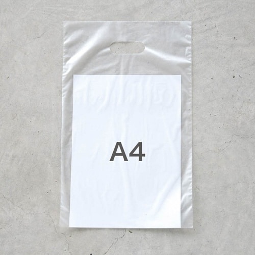 リーズナブルな半透明無地のOPP袋。試供品配布や大量配布に最適で、ハンドル付きで持ち運びも便利です。 |