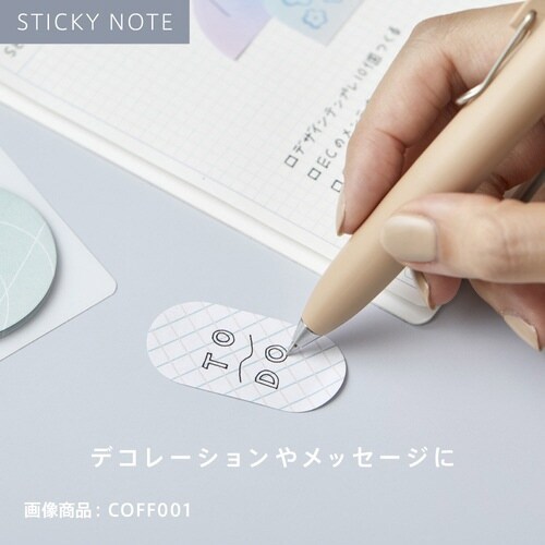 コスメをモチーフにしたシール・付せんシリーズ「コフレ」です。箔やニュアンス柄を取り入れることで、コスメの世界観をそのままデザインに落とし込み、日々のメイクのように自由な表現を楽しめます。