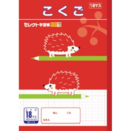 かわいい動物イラストの学習帳。こくご18マス+字リーダー入り |
