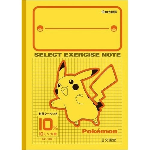 ポケモン柄の学習帳。10mm方眼罫科目シール付き |
