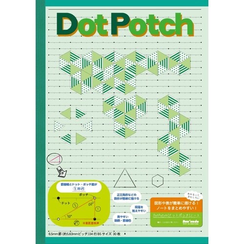ドットとポッチを結ぶだけでフリーハンドで図形がきれいに描けるノートです。 |