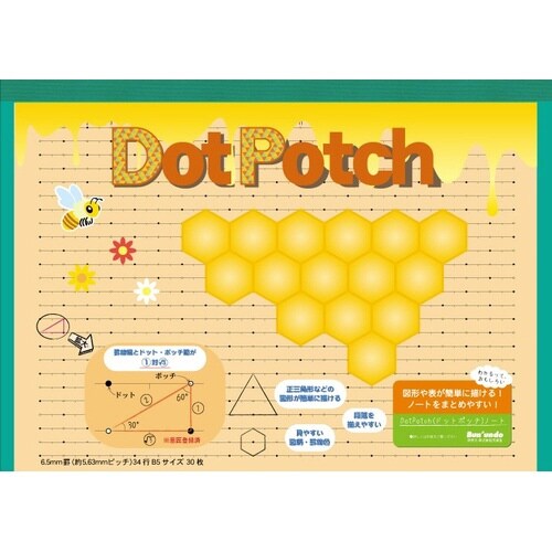 ドットとポッチを結ぶだけでフリーハンドで図形がきれいに描けるノートです。板書がとりやすい横型タイプ。 |