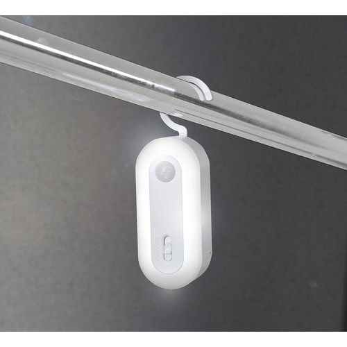 暗い場所でセンサーが人の動きを感知すると自動で点灯します。付属のフックや両面テープでも設置が可能です。他にもデスク周りや玄関などでの手元灯としてもお使いいただけます。 |