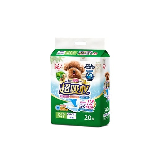 約12時間のおしっこ3回分をしっかり吸収できる、厚型タイプのペットシーツです。長時間ペットシーツを取り替えられない時も安心です。銀イオン抗菌剤を配合することにより、トイレ後の細菌の繁殖を抑えます。 |