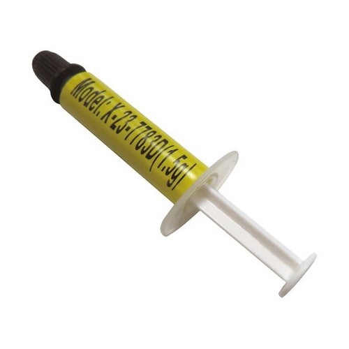 発熱体(CPU等)と放熱体(ヒートシンク等)の間に塗り、熱伝導の効果を高めます。灰色グリース状で、薄膜塗工が可能です。 |