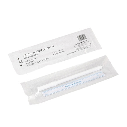 肌に直接描ける、水性用スキンマーカーです。アルコールで容易に拭き取ることが出来ます。1本ずつ個包装されており、滅菌済です。化粧品にも使用されている、安全な顔料を使用しています。 |
