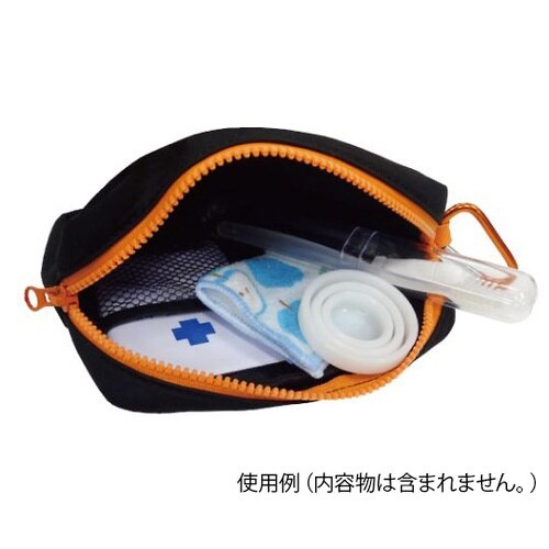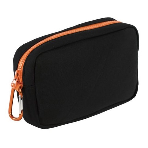 クッション性素材のカラビナ付ポーチ。内側には片面メッシュポケット付き。 |