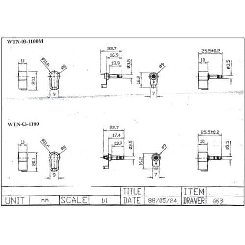 3.5mm径のL字型モノラルプラグです。本体部は外れますので外してからはんだづけしてください。 |