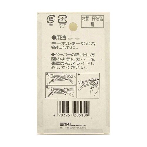 キーホルダーなど名札入れに。 |