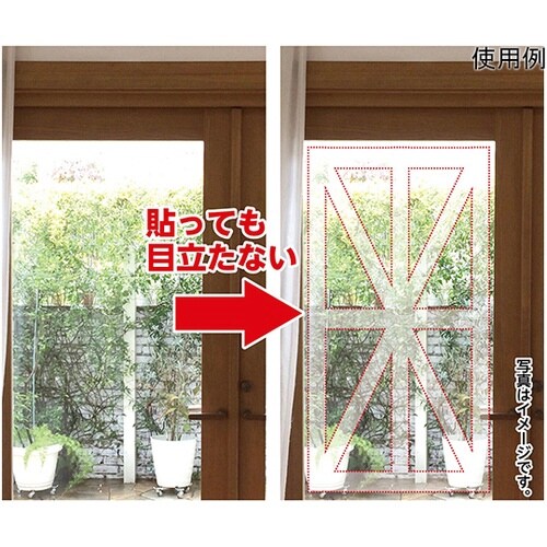 ガラスの飛散を抑止するテープです。本品は梱包テープや養生テープと異なり、保護フィルムをはがしてから使用するテープです。透明なので貼っても目立ちません。のり残りが少なくキレイにはがせます。 |