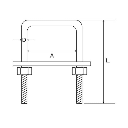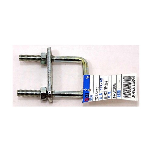 コ型ボルトナットにプレートがセットされているので様々な物を固定できます。パイプ・角材の固定に。壁面・床面・地面への固定金具として。 |
