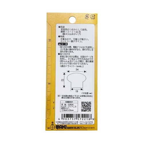 木製なので、手触りが暖かい。カントリー調デザイン。家具用のつまみとして使用します。取付けの際、電動ドリルなどを使用しねじを締めすぎると本体に割れが生じる恐れがあります。 |