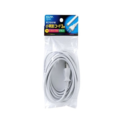 片プラグ付小判形コード主に屋内で使用するAC125V以下の小型電気器具の電源コードの補修やテーブルタップの延長・補修などに使用します。 |