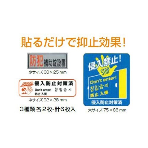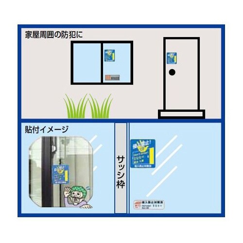 窓ガラス・玄関ドア・門扉・車庫に貼るだけで防犯効果が得られる「防犯ステッカー」のセット。 |