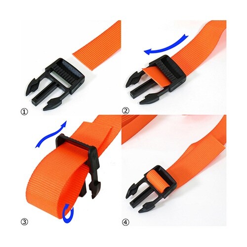 簡単操作で確実な荷締め・結束ができます。軽量・ワンタッチ式プラスチックバックル。 |