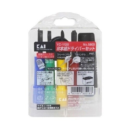 ドライバーは、+0、+1、+2、−1.8、−3、−5、−6と、キリのセットです。ネジ・釘・小物が入る収納スペース付き。付属のマジックコインで吊・折釘・ヒートンフックが楽に回せます。 |
