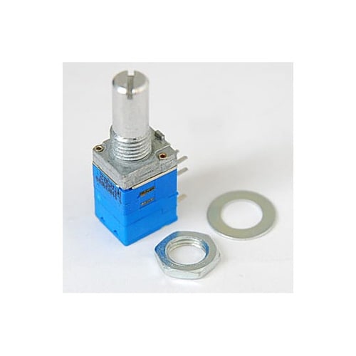 A特性の2連可変抵抗器で主にステレオのボリュームコントロール用です。スイッチ付きなので機器を小型化できます。 |