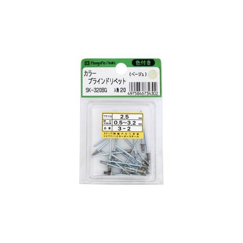 新潟精機 カラーブラインドリベット (3−2) 20本入 ベージュ SK−320BG 1袋 9317-1410