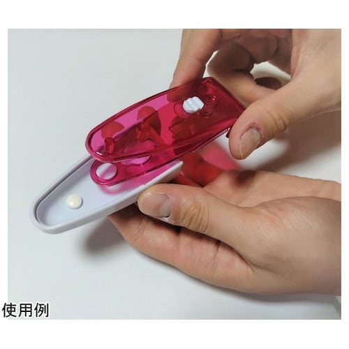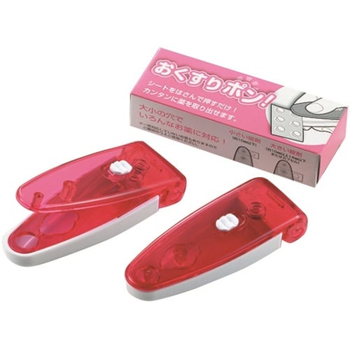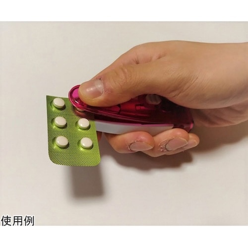 錠剤シートをはさんで押すだけで簡単に薬を取り出せます。薬を取り出すときにうっかり落とす心配がありません。大小の穴でいろいろな薬に対応しています。 |