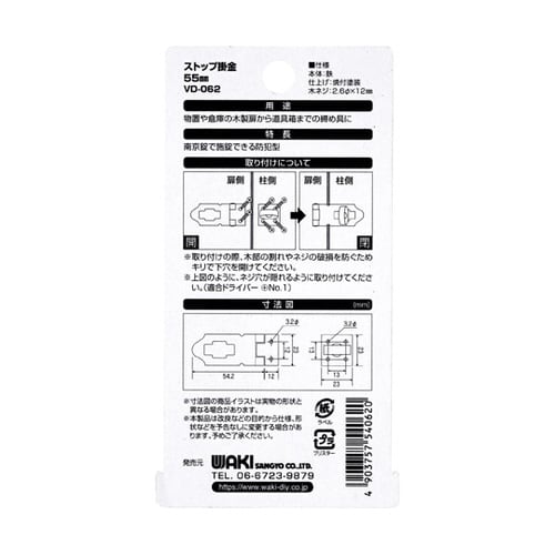 物置、倉庫の木製扉から道具箱までの締め具に南京錠で施錠できる防犯型物置や倉庫の木製扉から道具箱までの締め具に取り付けの際、木部の割れやネジの破損を防ぐためキリで下穴を開けてください。 |