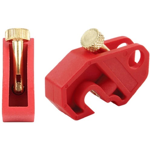 ブレーカーロックです。止めねじがセットされており工具は一切必要ありません。ブレーカーを直接ロックアウトし、偶発事故を防ぎます。 |