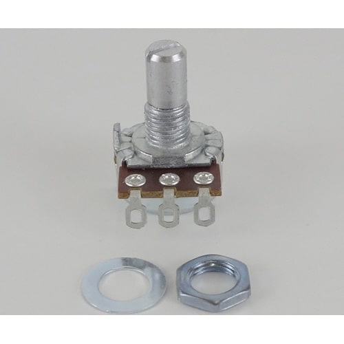 A特性は回転角に対しタップの抵抗値が指数関数的に変化しB特性は直線的に変化します。音量調整(ボリュームコントロール)には通常A特性のものを使います。 |
