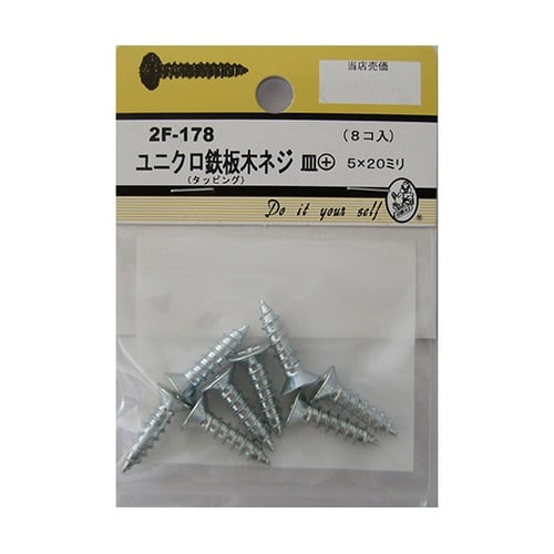 ビーバー ユニクロ鉄板木ネジ 皿+ 5×20mm 8個入 2F178 2F178 1パック 9318-5004