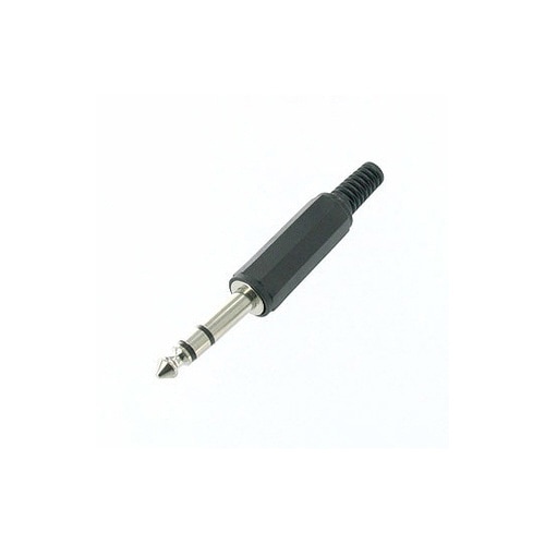 ギターや本格オーディオ等に使われる6.3mm径のステレオプラグです。プラスチック部は回すと外れるので外してから電線とはんだづけしてください。 |