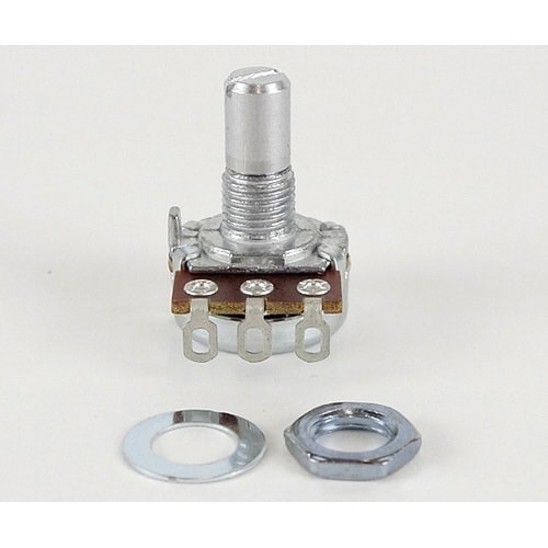 A特性は回転角に対しタップの抵抗値が指数関数的に変化しB特性は直線的に変化します。音量調整(ボリュームコントロール)には通常A特性のものを使います。 |