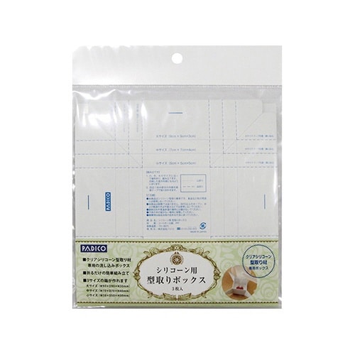 クリアシリコーン型取り材用専用ボックス。原型のサイズに合わせて3サイズの箱がつくれます。 |