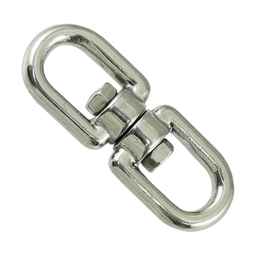 ワイヤー、チェーン等の連結に。中央が回転するので、ワーヤーやチェーンのより戻しができます。ステンレス製なので、防錆性・耐候性に優れ丈夫で長持ち。 |