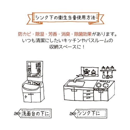 天然由来の機能性香料をB型シリカゲルに含侵。シンク下等臭いの気になる所に置くだけ。 |