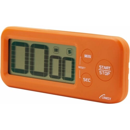 簡単操作の3つボタン。1秒から99分59秒までのカウントダウンタイマー。最大99分59秒までのカウントアップタイマー。前回のセット時間を表示するリピートメモリー機能付き。 |