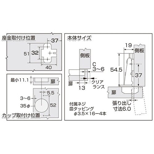 取付けたあとから扉の締まり具合を調整できます。 |