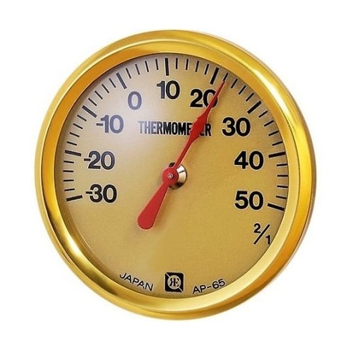 直径67mmの小型な温度計です。背面に壁掛け用の穴があります。 |