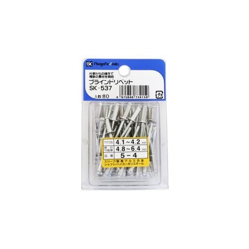 新潟精機 ブラインドリベット (5−4) 80本入 SK−537W 1袋 9319-3405