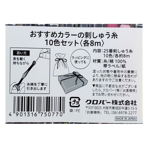 おすすめカラー10色入り。ネコやイヌ、入園入学のお名前やワンポイントを刺すのにおすすめの色合いを、チャームやアクセサリーとして使う際はアクセントとなる色合いをチョイス。 |