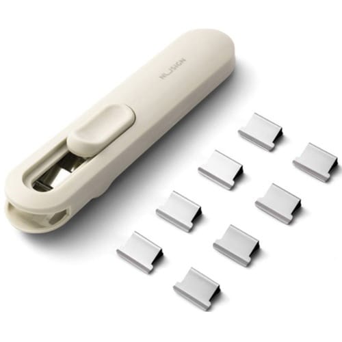 押すだけで紙を傷つけずまとめる事ができます。クリップは使用後、不要になれば使い回しが可能です。 |