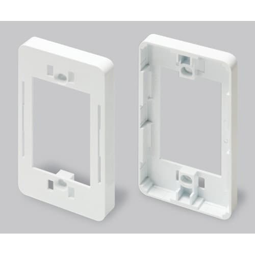 コンセントプレートと壁面の間に取付けて使用します。1号、2号ニュー・エフモールに適合するノックアウト付きです。露出ボックス用カバーが取付けられます。豊富なカラーを取揃えています。 |
