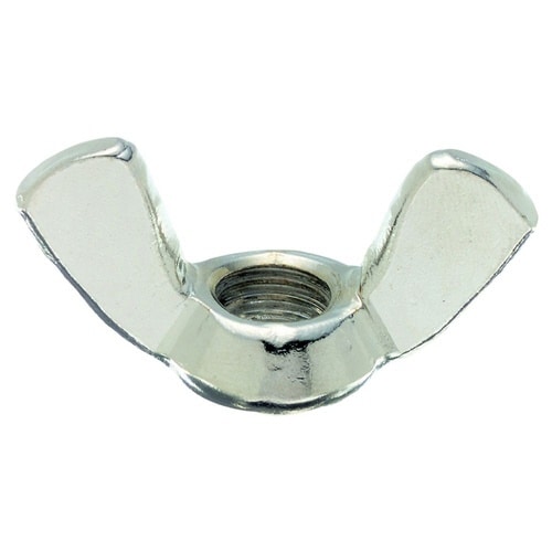 蝶の羽根のように加工したウイットねじのナットで、手で締付けたりゆるめたりできます。材質は鋼で耐食性向上のため、ニッケルめっき(白っぽい色合い)がしてあります。 |
