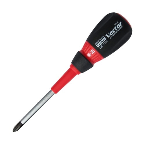 押しながら力のよく伝わる大径クッショングリップ。刃先は、高精度ブラックポイント加工。ハンマーで叩ける大型ナット。サックに入る先細形状。弾力グリップで強力締め付け。 |