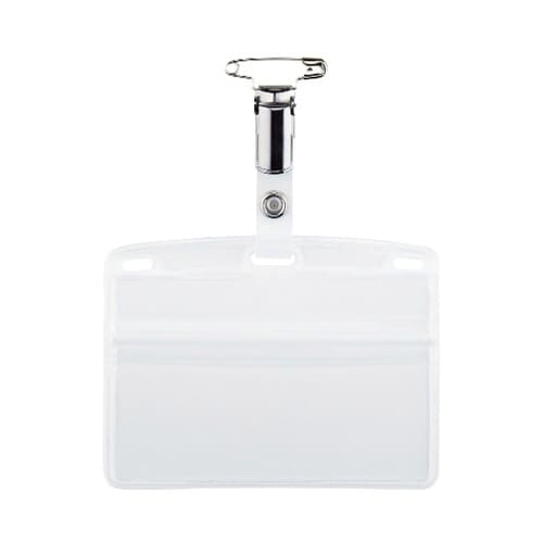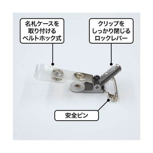 丈夫で高級感のある金属クリップです。名札用ケースはチャック式で水やホコリが入りません。 |
