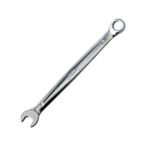 スパナのスピードと、めがねレンチの強さを兼ね備えたコンビネーションスパナ。仮締めをスパナ側で、本締めはめがね側でというように、1本で2役の機能工具です。使いやすく手になじむ柔らかい曲線デザイン。 |