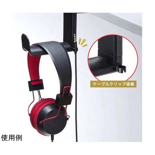 テーブルに挟んでヘッドフォンや小物等を掛けるフックです。 |