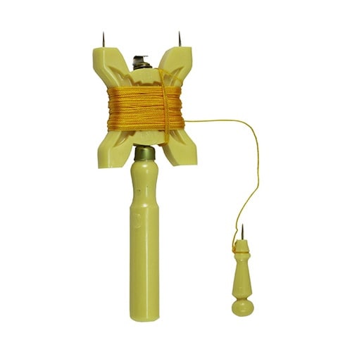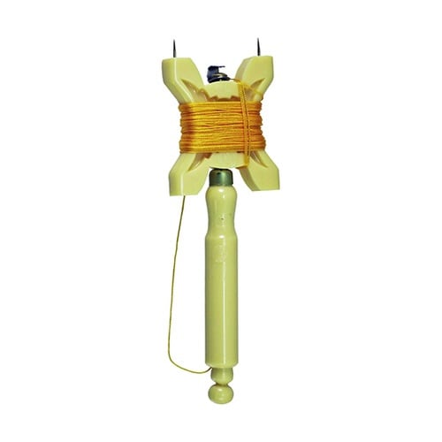 建築用の水糸等の巻き付けに。プラスチック製凧糸巻き糸とカルコがセットされている凧糸巻です。カルコの針は焼入れ、焼き戻しを施し、強度を高めてありますので非常に丈夫です。 |