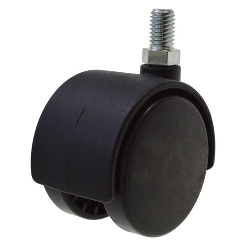 車輪がナイロンで、耐熱性、耐薬品性、耐食性、耐摩耗性に優れている。軽量。デザインキャスター(双輪タイプ)として使用。椅子、机などに。 |