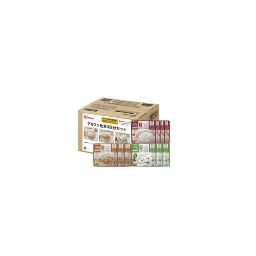 長期保存できる、アイリスの低温製法米 のおいしい非常食です。3日分、10食セットです。毎食、味の異なるごはんが食べられます。スプーン付きで、水またはお湯を注ぐだけでカンタンに調理できます。 |