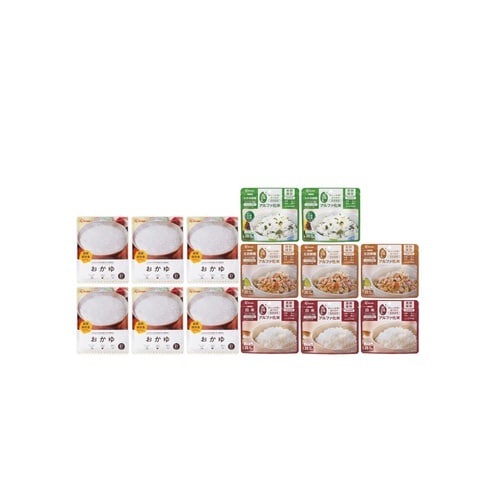 毎食、味の異なるごはんが食べられる、防災食ごはん3日分セットです。製造日から5年間の長期保存ができ、水またはお湯を注ぐだけでカンタンに調理できるα化米と、レトルトおかゆの14食セットです。 |