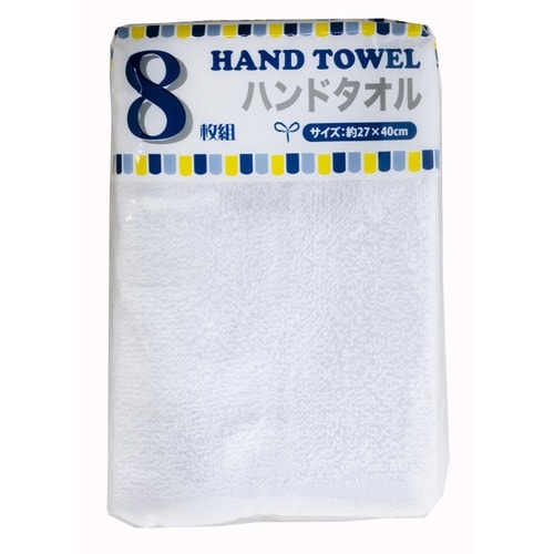 綿100%で吸水性がよく、ソフトな使い心地のハンドタオルです。 8枚入りで、種類はアソート(ブルー、グリーン、ピンク、イエローが各2枚)と全色ホワイトがございます。 |