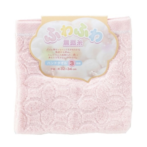 ハンドタオル ふわふわ無撚糸 3枚 ピンク
